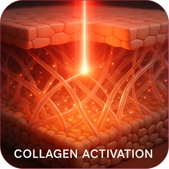 The 660 nm red light penetrates deep into the dermis and energizes fibroblast cells, boosting their production of collagen and elastin. It also slows collagen breakdown, so you’re not only building more collagen — you’re protecting the collagen you already have.
